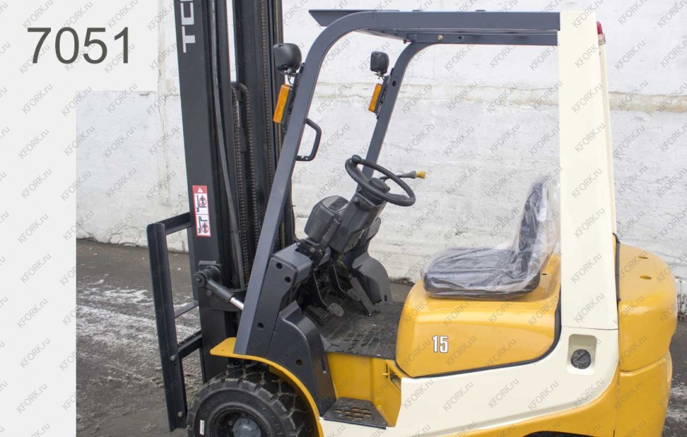 Бензиновый автопогрузчик TCM Б/У с интентарным номером 7051 2004 года выпуска. Состояние - Хорошее. Имеет грузоподъемность 1500 кг. Гарантия: 3 мес или 500 м/час.