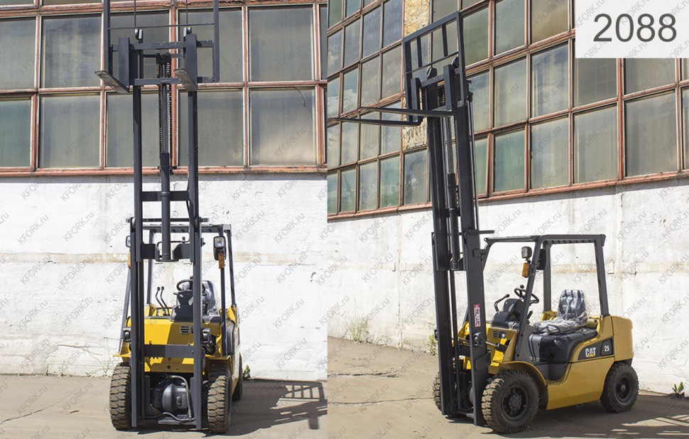 Дизельный автопогрузчик Caterpillar Б/У с интентарным номером 2088 2008 года выпуска. Состояние - Хорошее. Имеет грузоподъемность 2500 кг. Гарантия: 3 мес или 500 м/час.