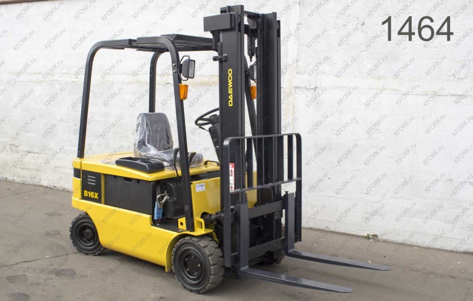 Электрический погрузчик Daewoo Б/У с интентарным номером 1464 2004 года выпуска. Состояние - Хорошее. Имеет грузоподъемность 1600 кг. Гарантия: 3 мес или 500 м/час.