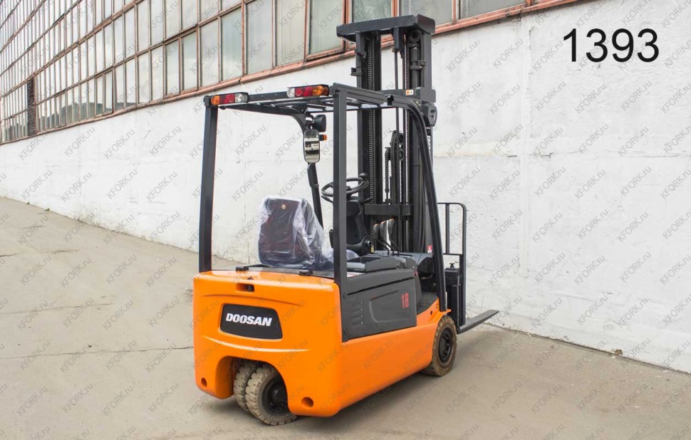 Электрический погрузчик Doosan Б/У с интентарным номером 1393 2007 года выпуска. Состояние - Отличное. Имеет грузоподъемность 1750 кг. Гарантия: 6 мес или 800 м/час.