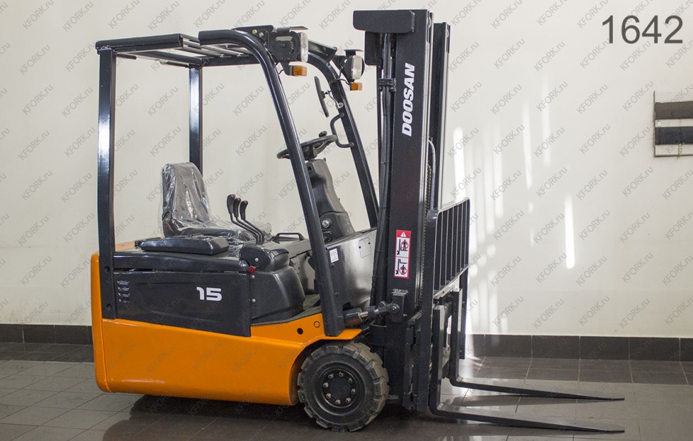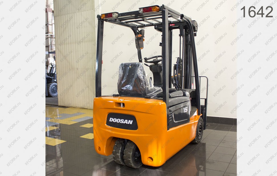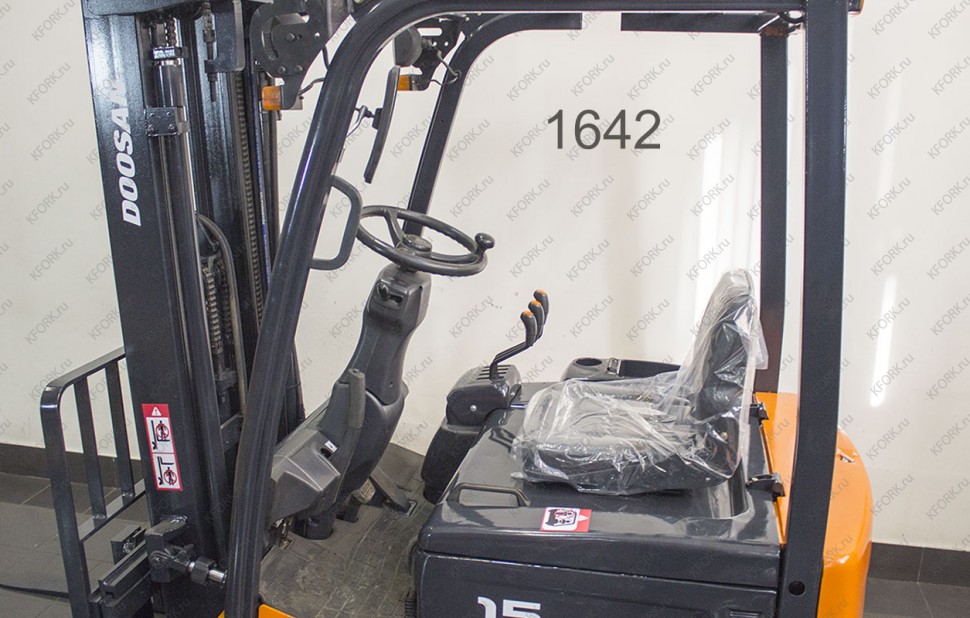 Электрический погрузчик Doosan Б/У с интентарным номером 1642 2009 года выпуска. Состояние - Хорошее. Имеет грузоподъемность 1500 кг. Гарантия: .