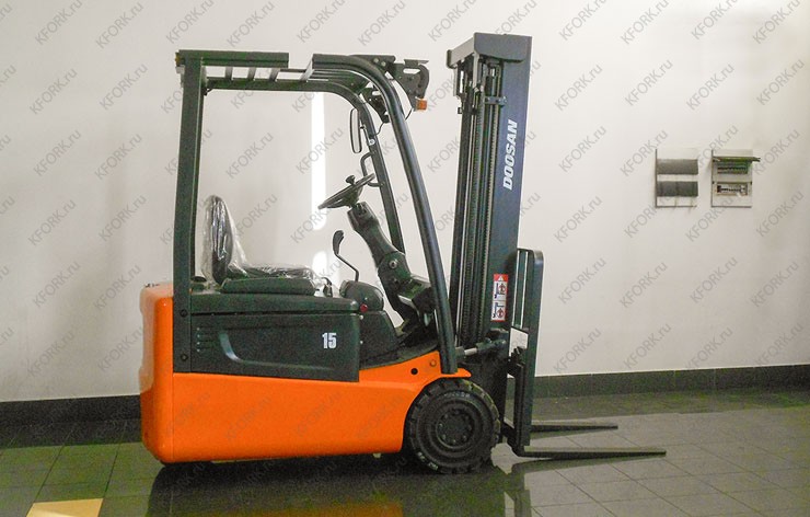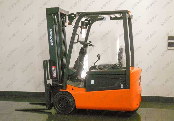 Электропогрузчик вилочный Doosan модели B15T-5 б/у с инвентарным номером K00026 2007 года выпуска. Состояние - удовлетв.. Имеет грузоподъемность 1500 кг. Гарантия: 1 месяц или 200 м/час.