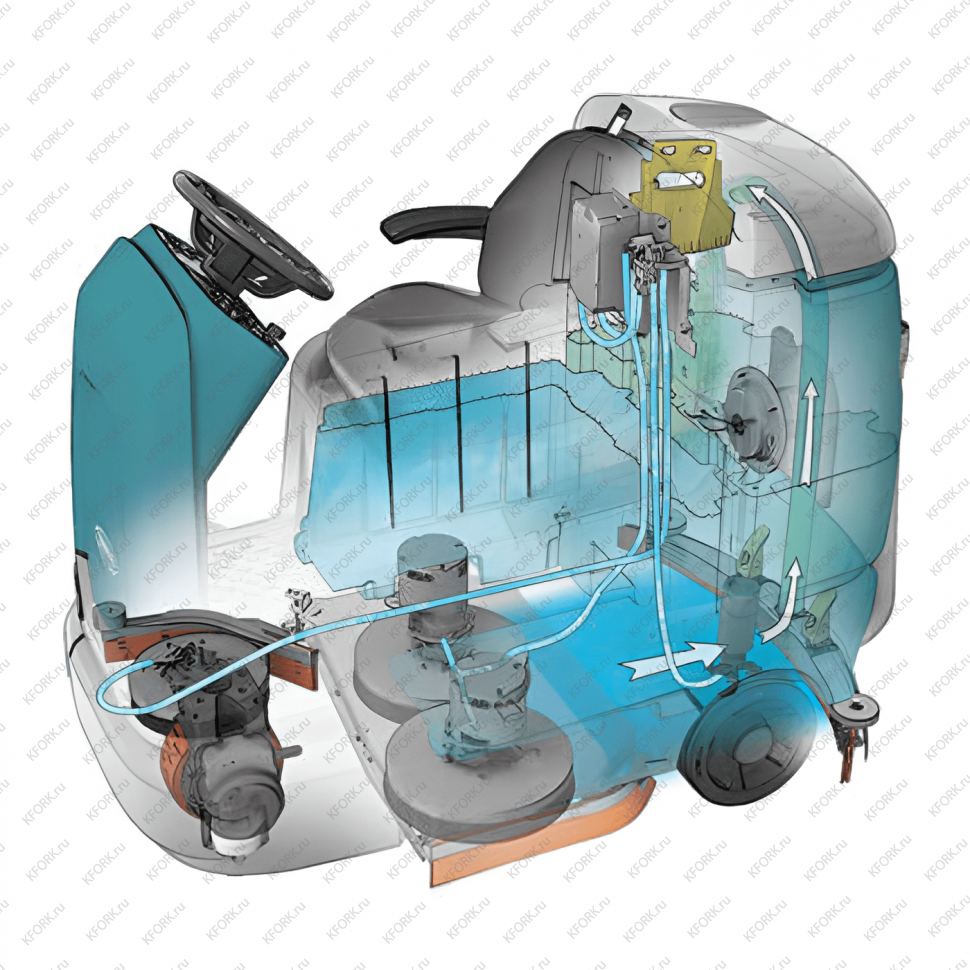 36-вольтовая аккумуляторная система обеспечивает до 4,5 часов непрерывной работы при скорости движения до 8 км/ч. Технология ec-H2O™ значительно сокращает расход воды и моющих средств, сохраняя при этом высокую производительность до 6660 кв.м/ч.